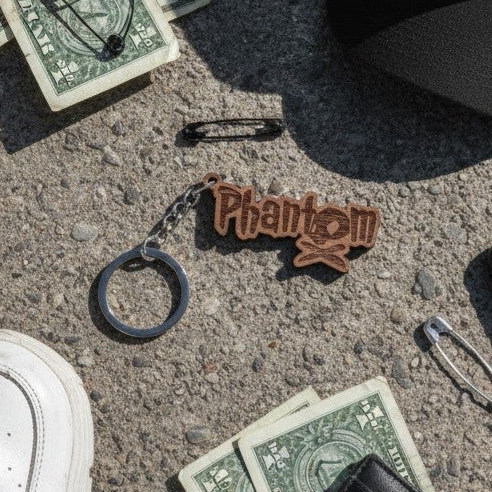 Porte-clé en bois de noyer 3 mm, gravé PhantomX. Graphique, léger et stylé, un accessoire collector pour vos clés ou sac.
